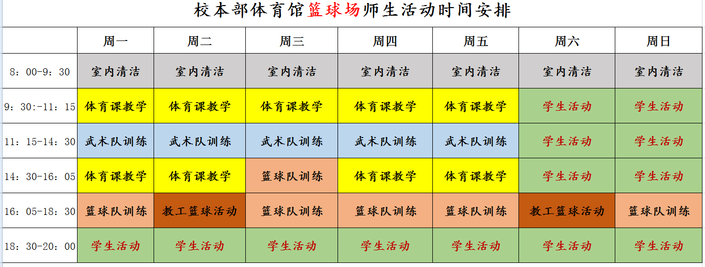 校本部体育馆开放时间通知