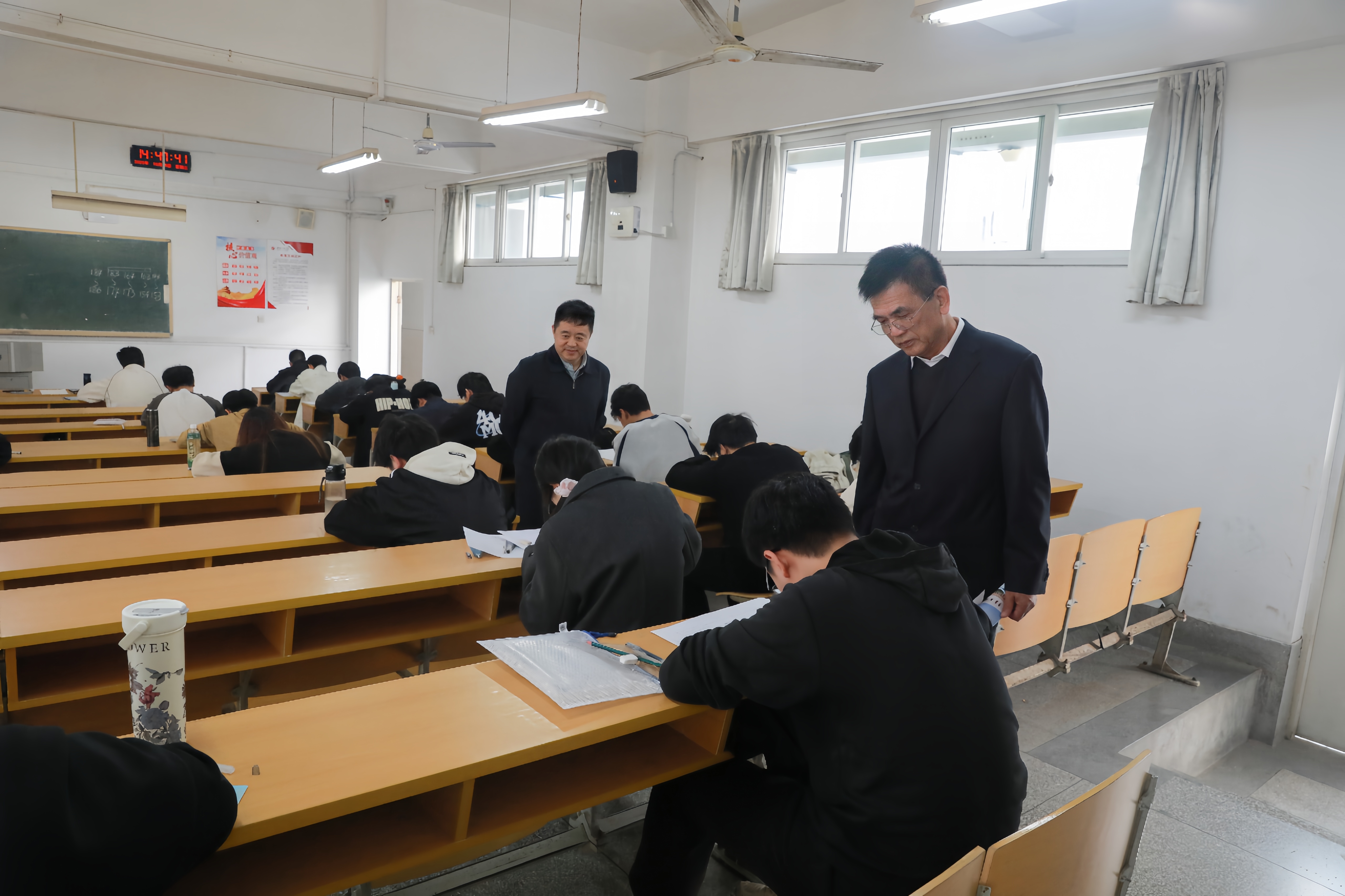 活动现场,校领导细致检查了现场布置、组织安排及学生作答状态。卢平指出,学业深造不仅关系到学生个人成长发展,更直接影响学校人才培养质量。他表示学校始终坚持以学生为中心,要求各学院、各职能部门需进一步加强协同配合,全面做好学业深造服务保障工作,持续细化完善学业深造指导举措,为学生搭建更稳固、更高效的成长支撑桥梁。鼓励广大学生以此次检测为重要契机,精准查找知识短板与学习漏洞,在后续备考中锤炼意志品质、沉淀综合能力。