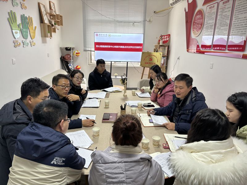 为贯彻落实学校“三全六专”育人实践,提升学生心理健康教育工作水平,1228日上午,校心理健康教育中心主任金艾裙、副主任杜松涛一行来生物与食品工程学院调研指导,学院党委副书记王彦青、团委副书记杨良军及全体辅导员参加会议,会议由王彦青主持。