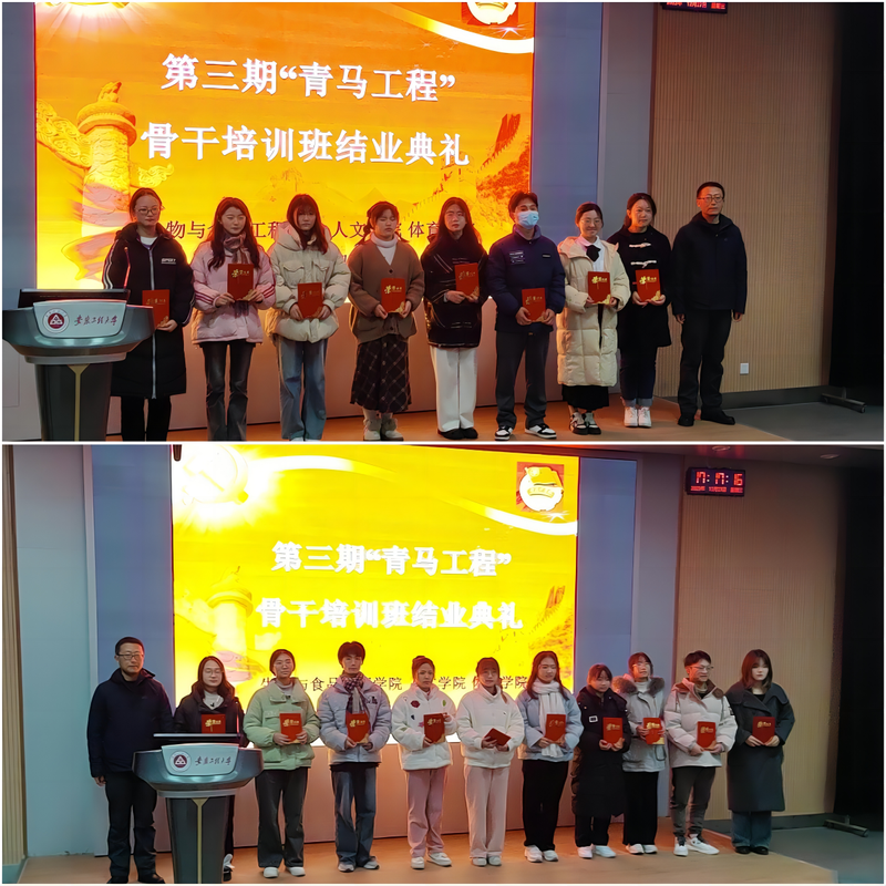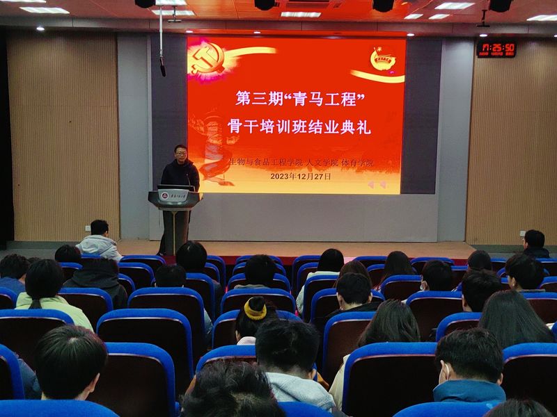 进一步提高大学生骨干的思想政治素质,更加坚定跟党走中国特色社会主义道路的信念。12月27日,生物与食品工程学院、人文学院、体育学院在5J117联合举办第三期“青马工程”骨干培训班结业典礼,生物与食品工程学院党委副书记王彦青、部分辅导员以及近70名学员参加结业典礼。