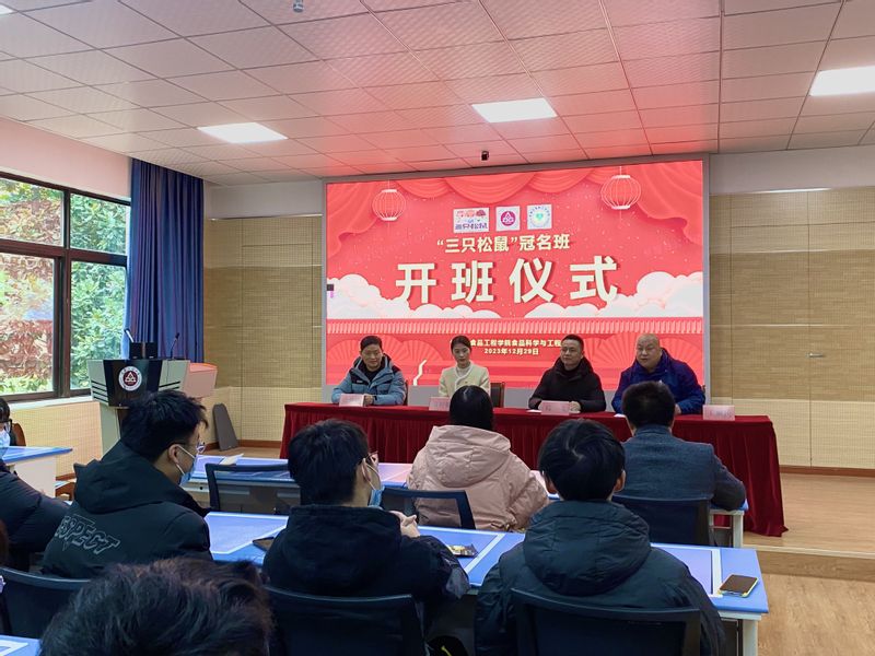 据悉,首届三只松鼠冠名班共29名学员,来自生物与食品工程学院食品科学与工程专业学生。冠名班致力于树立符合生物与食品工程学院发展的产教融合标杆。目前已经为班内每位学生配备了本科生导师,后续工作将逐步按照计划推进。