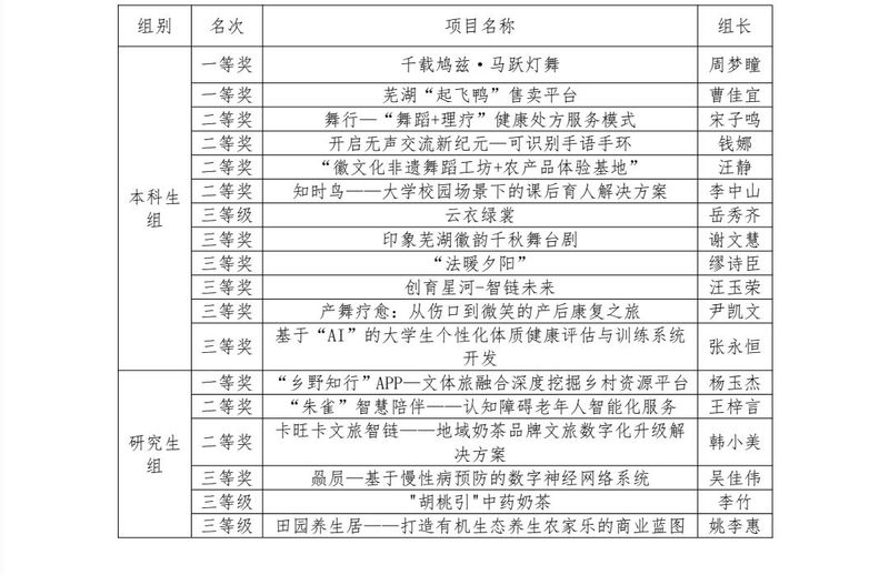 为落实立德树人根本任务,把创新教育贯穿育人活动全过程,扎实做好中国国际大学生创新大赛(2025)实施工作,根据校赛通知要求,体育学院制定了《体育学院2025年大学生创新大赛实施方案》。经过学院动员、教师认真组织、参赛同学积极准备、学院专家组仔细评审,现就院赛结果公布如下: