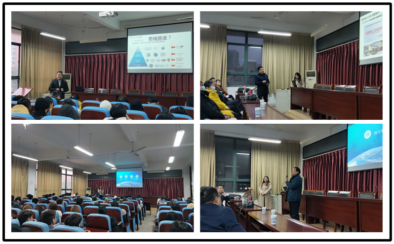 在企业宣讲中,王杰向大家介绍了奇瑞汽车国际化发展进程及企业优势,指出当前中国汽车的质量与科技含量正处在一个稳步上升、不断突破的状态,并系统阐述了奇瑞在国内外建立的多层次、立体化人才培养和发展机制。接着,汪洋作为艺术的校友向在座的同学分享了自己学习、工作和职业发展历程,并重点介绍了造型中心的研发能力,欢迎同学们作为新生力量加入到造型设计团队中,为行业发展注入新鲜血液。随后,奇瑞方班主任苑玲娟对设计师班培养方案进行说明,现场学生认真聆听,积极互动,气氛热烈。最后,任家钱副书记就校方有关安排进行说明,鼓励大家积极报名,希望广大学子能够抓住机遇,即刻启程,在奇瑞找到自己的最佳赛道。