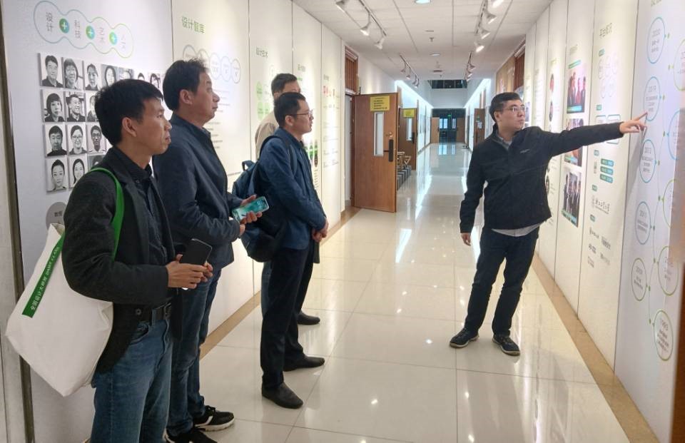 在浙江工业大学设计与建筑学院,胡家增一行参观了浙江省工业设计技术创新服务平台、校企联合研发中心、校地研究院和多个设计工作室,听取了该校社科院学术副院长、设计专业硕士学位点负责人唐智川关于学院概况、工业设计专业办学定位、人才培养体系、实验室建设等方面的介绍。双方围绕设计人才培养、校企合作、工作室和实验室管理等内容作了深入的交流讨论。